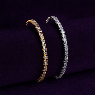 Unsere Schmuckstücke bestehen aus hochwertigem Edelstahl, veredelt mit 18K Vergoldung oder Rhodium-Finish, sowie funkelnden Zirkonia-Steinen in 3A-Qualität.